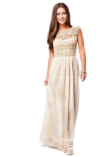 S07 Beige lace Evening Dresses party full length prom gown ball ...